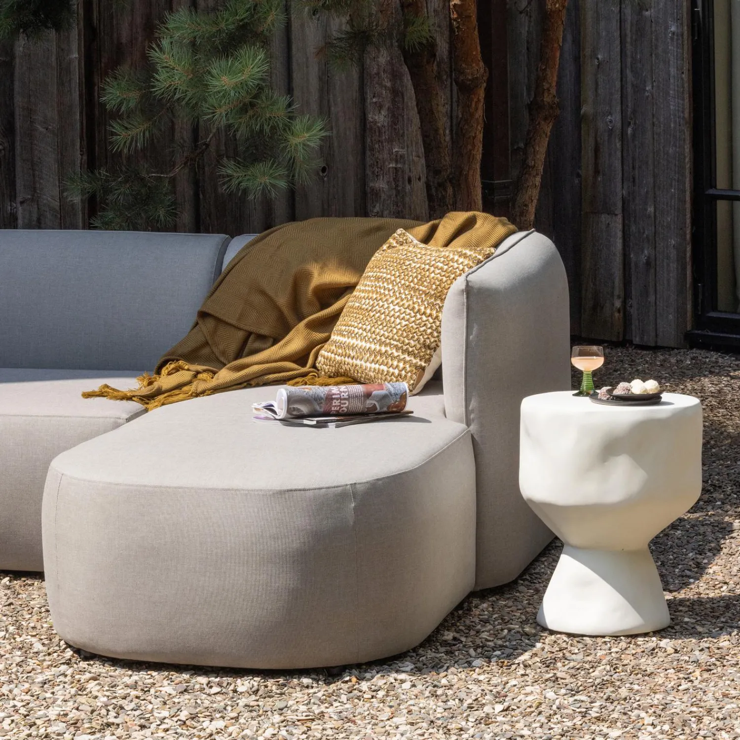 Het organische design van deze bijzettafel zorgt voor een frisse uitstraling die goed past in verschillende woonstijlen. De zachte, ronde vormen geven het tafelје een natuurlijke look die zowel modern als tijdloos is. In een lichte ruimte benadrukt de naturel kleur de rustige sfeer, terwijl het in een donkere setting voor een mooi contrast zorgt. Op je terras of in de tuin creëert deze bijzettafel een relaxte lounge-vibe waar je graag vertoeft.