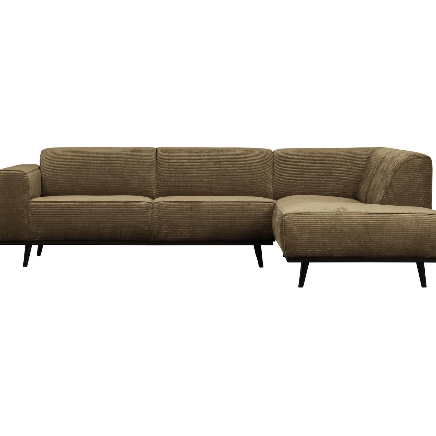 Deze bank is voorzien van de trendy platte brede ribstof (53%PES/47%PAC) in de kleur rock. De ribstof heeft een volle zware kwaliteit, is geschikt voor intensief gebruik, voelt zacht aan en brengt een warme sfeer in huis.