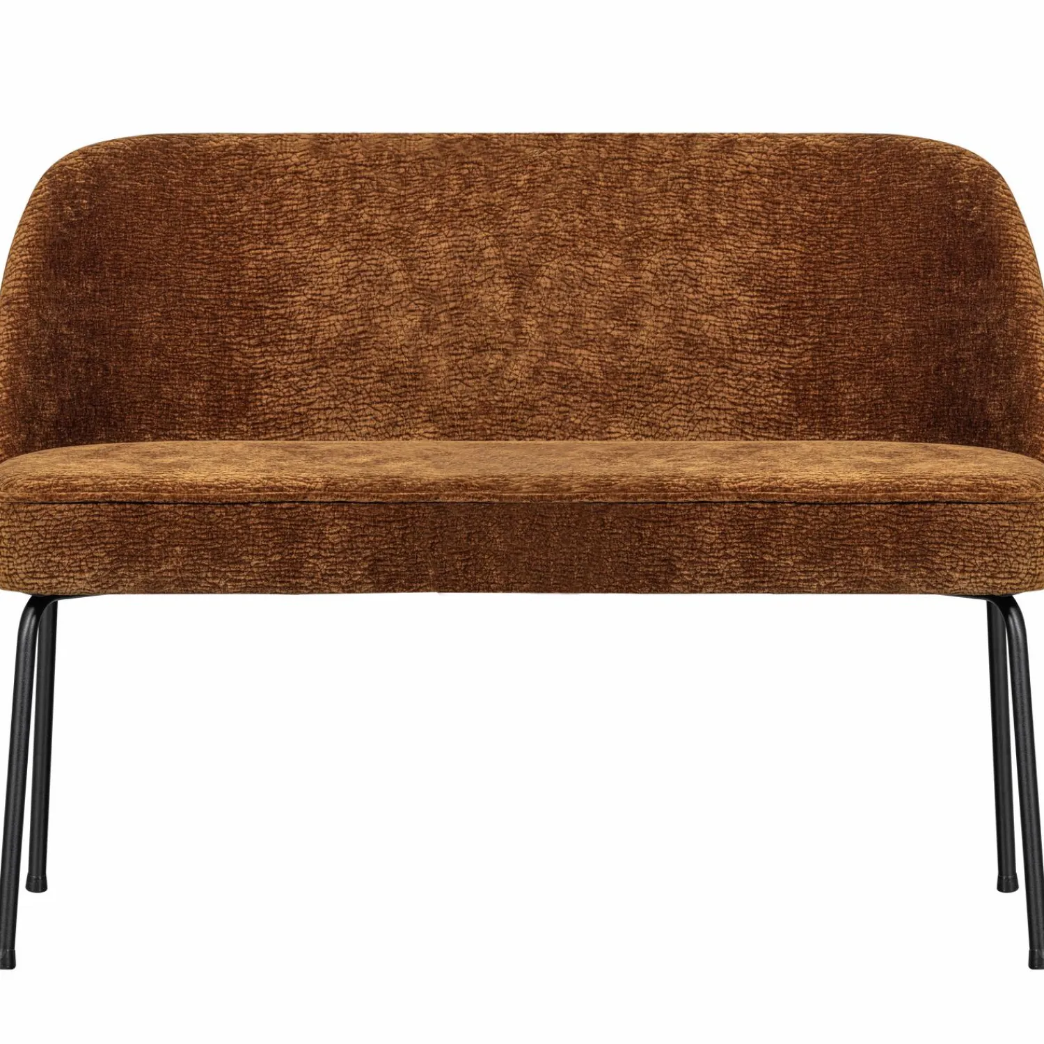 De middenbruin kleurige chenille stof voelt heerlijk zacht aan en heeft een bijzonder 3D-patroon met golvende print. Deze structuur zorgt voor sprekende diepte en een luxe matte glans. Met een Martindale van 100.000 is de stof bestand tegen dagelijks gebruik. Het slanke metalen onderstel met matzwarte poedercoating geeft de bank een moderne uitstraling. Of je nu houdt van Scandinavisch, industrieel of modern klassiek, de Vogue past overal bij.