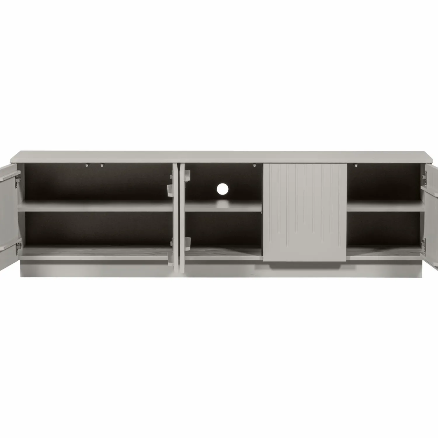 Het Pencil tv meubel heeft een hoogte van 52cm, een breedte van 180cm en een diepte van 40cm. Afmeting vakken: 5x H 19 cm x D 38 cm / 4x B 71 cm / 2x B 35 cm. Het snoergat bevindt zich achter het middelste deurtje, bovenste plank. De hoote van de voet is 8cm. Pencil heeft een max. draaggewicht van 15 kg per plank.