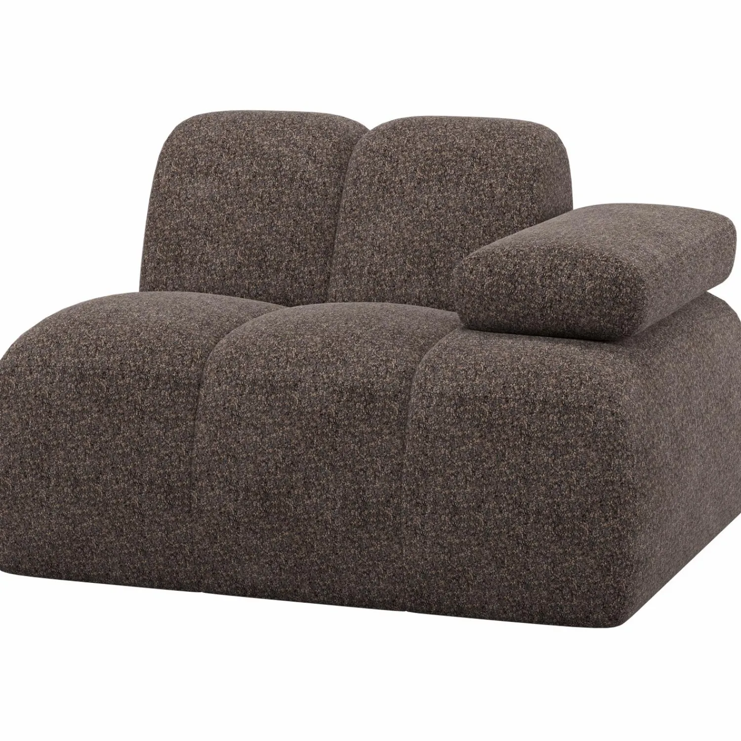 Het Mojo 1-zits element met arm in wollig bruin brengt flexibiliteit en comfort in jouw interieur.