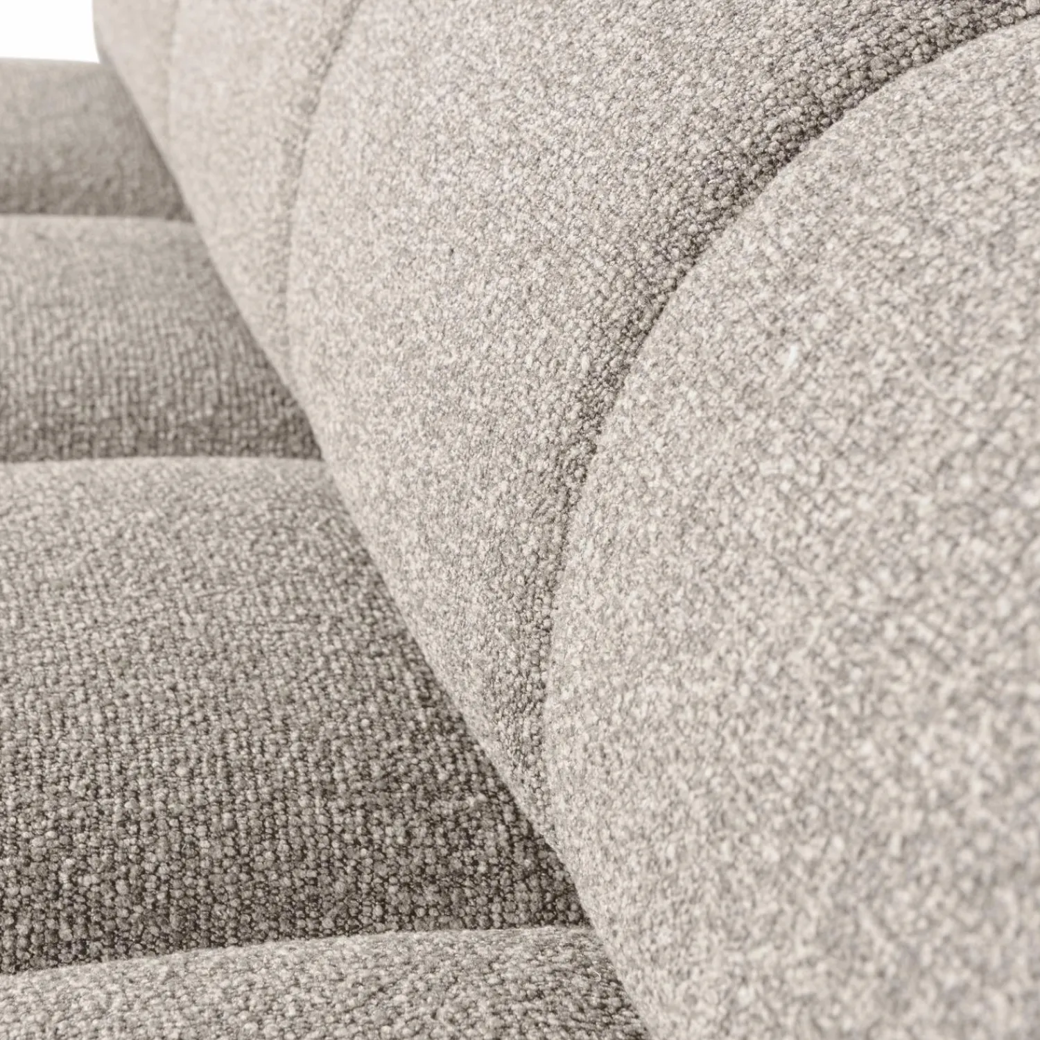 Deze bank is gestoffeerd met een verfijnde bouclé stof met een subtiele kleurmelange en een stevige grip. Deze elegante stof, vervaardigd uit 100% polyester, heeft een Martindale van 100.000, wat betekent dat de stof geschikt is voor intensief woongebruik. De stevige bouclé structuur zorgt ervoor dat de stoffering zijn vorm behoudt en lang meegaat, zelfs bij dagelijks gebruik. De bouclé stof is een eenvoudige stof in onderhoud. Bij vlekken is het aangeraden om te deppen, wrijving kan zorgen voor lichte plekken. Meeste vloeistoffen zijn te verwijderen met lauw water. Maak gebruik van een zachte, ronddraaiende beweging van buiten naar binnen. Houd de stof eenvoudig stofvrij met een speciale meubelborstel van de stofzuiger.