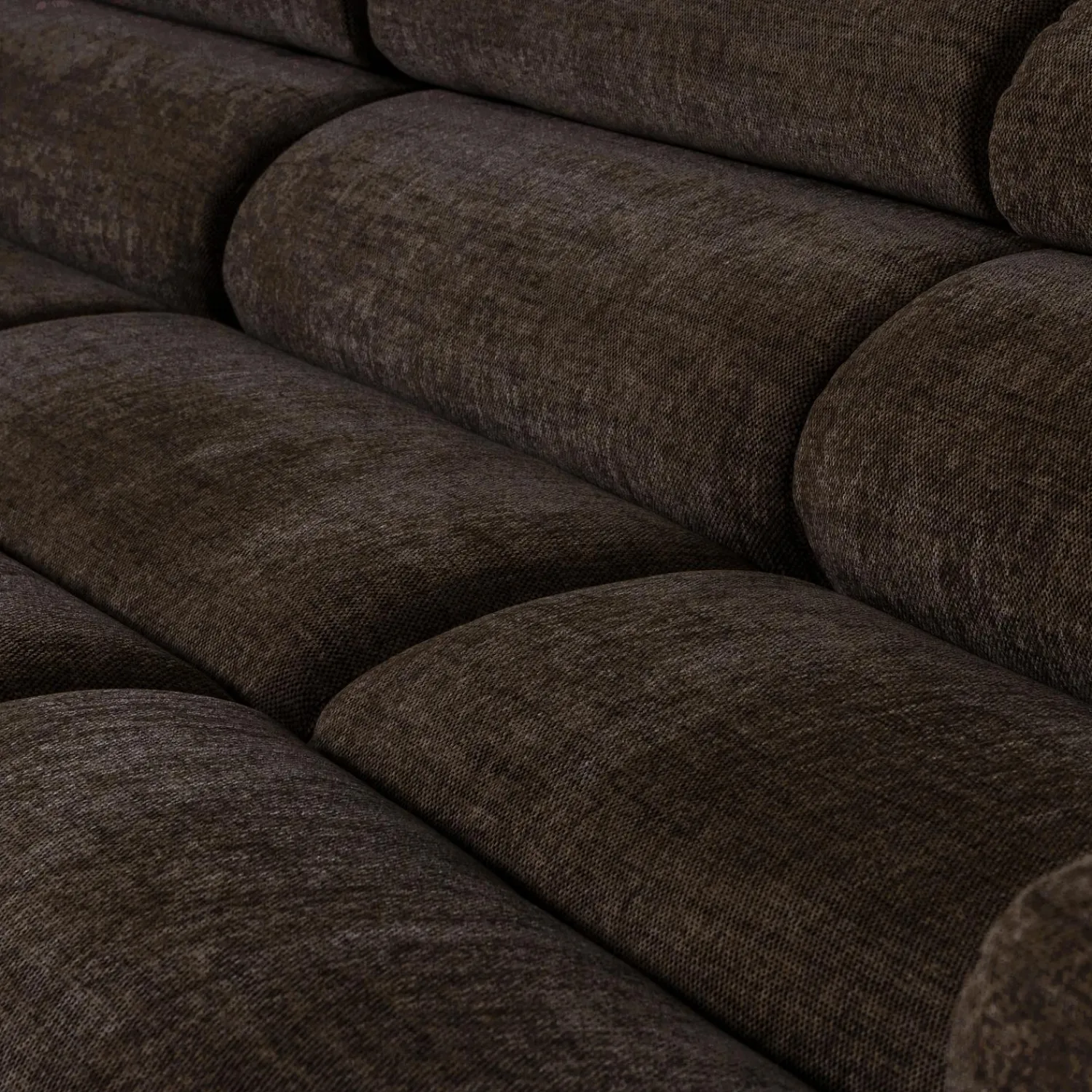 De donkerbruine melange-stof zorgt voor die extra textuur die je interieur net dat beetje meer karakter geeft. En die vriendelijke, afgeronde vormen? Die maken dat je gasten zich meteen thuis voelen. Het is alsof de bank je uitnodigt om te blijven, te ontspannen, te genieten.