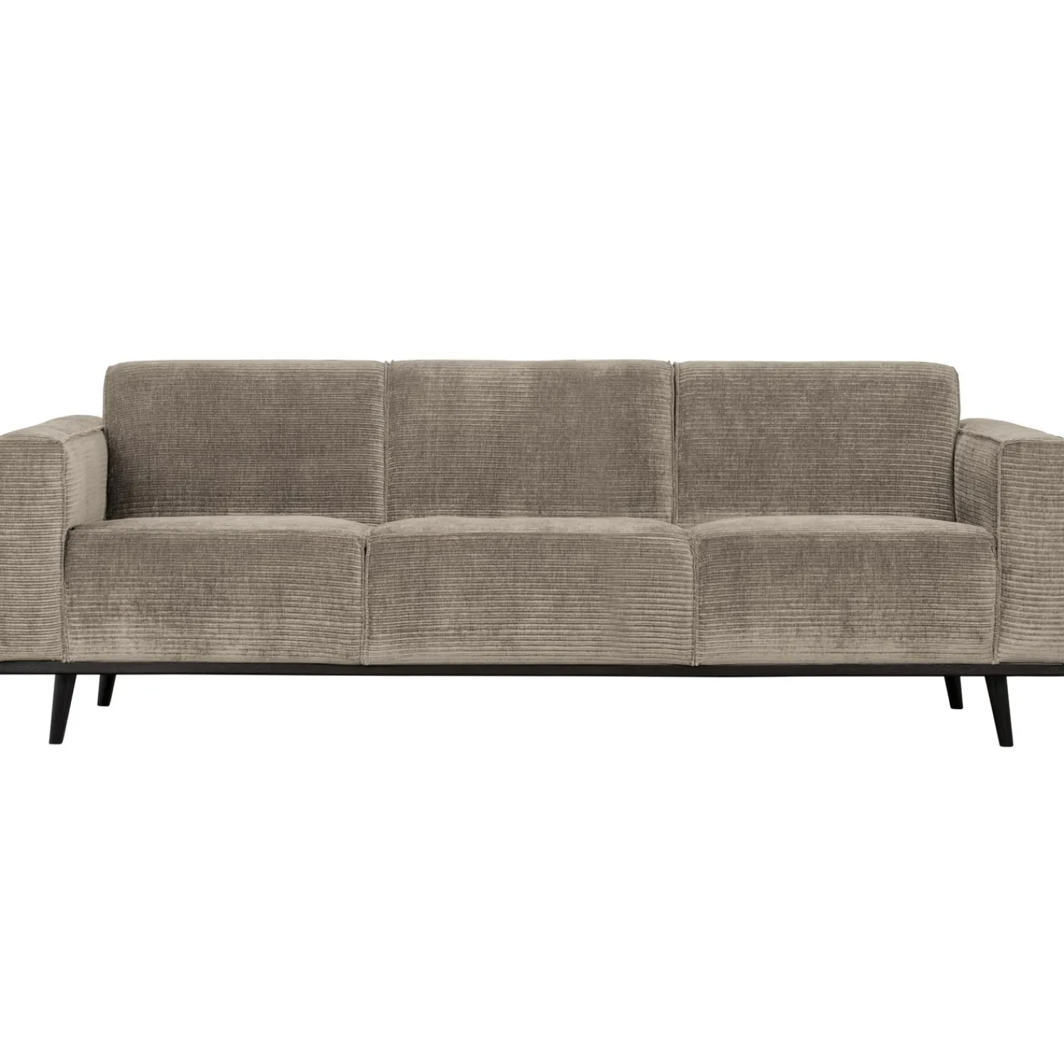 De ribstof heeft een volle zware kwaliteit en is geschikt voor intensief gebruik. Deze 3-zits uitvoering van de Statement heeft een zithoogte van 46 cm, een zitbreedte van 195 cm en een zitdiepte van 62 cm. De poten hebben een hoogte van 15,5 cm en zijn vervaardigd uit zwart gelakt berkenhout. De Statement bankenserie bestaat uit verschillende modellen en is beschikbaar in meerdere stoffen en kleuren. Ontdek de complete collectie Statement van het merk WOOOD.