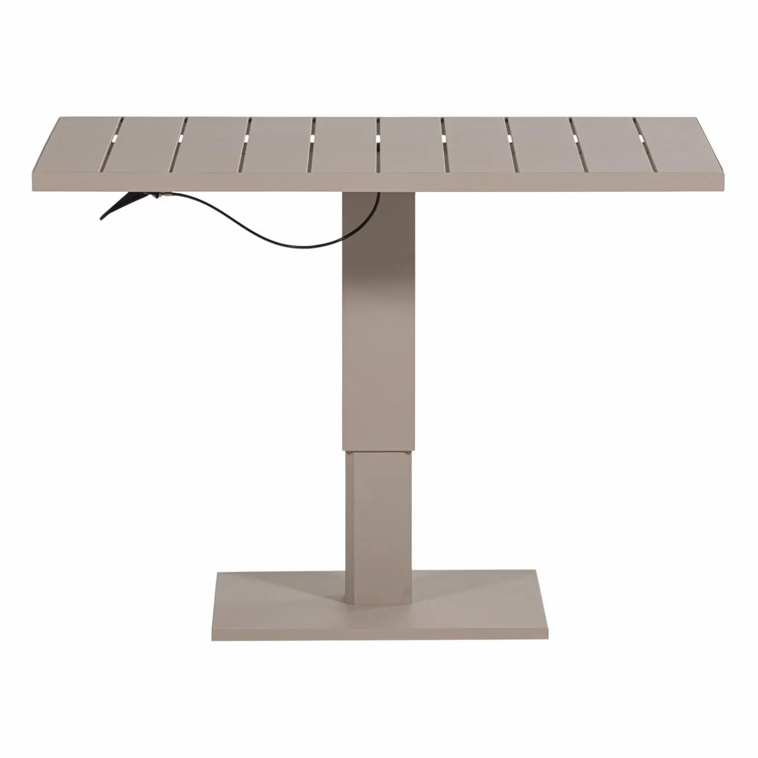 Het strakke aluminium design straalt moderne elegantie uit en past bij verschillende buitenstijlen. De eenvoudige lijnen en zand kleur zorgen voor een rustige, tijdloze uitstraling die mooi combineert met verschillende materialen. Door de verstelbare hoogte transformeer je de tafel van loungetafel naar eettafel, zo pas jij je moeiteloos aan. Het compacte formaat maakt het perfect voor kleinere terrassen en balkons.