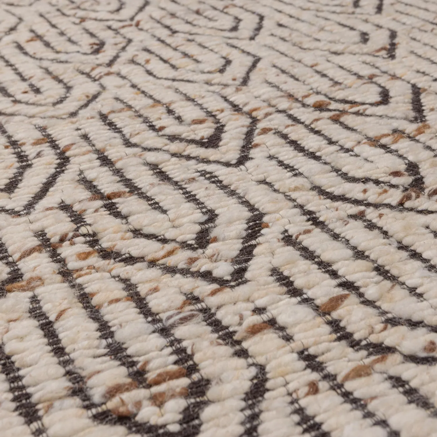 Een wollen vloerkleed wordt gekenmerkt door de zachte grip en iets stuggere structuur. De eerste periode kan het kleed flink pluizen, dit hoort bij het proces van deze natuurlijke vezel. Losse pluizen zijn gemakkelijk te verwijderen met de stofzuiger met meubelborstel. Als de natuurlijke vezels gekleurd zijn, zijn ze tevens gevoelig voor verkleuring. Houd het vloerkleed dan buiten het bereik van direct zonlicht. Het vloerkleed is tevens geschikt voor vloeren met vloerverwarming.