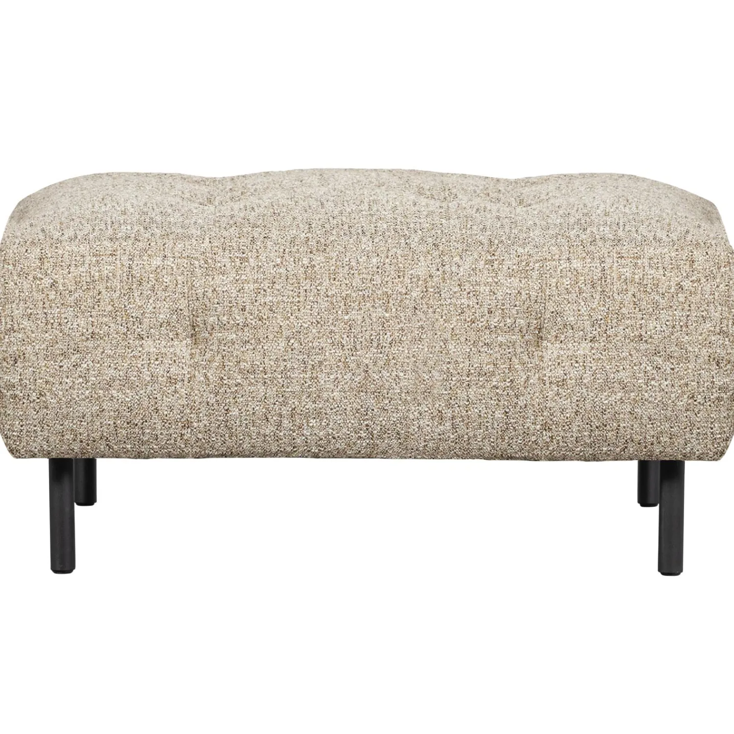 De zithoogte is 45 cm, zitbreedte is 90 cm en zitdiepte is 90 cm. De poten hebben een hoogte van 15 cm en ø3 cm. Hierdoor oogt de hocker luchtig en ruimtelijk. Bij vlekken is het aangeraden om te deppen met een lichtvochtige, schone doek. Wrijving kan zorgen voor verandering van de vleug. Het impregneren van de stof wordt niet nodig geacht, mocht dit toch een wens zijn is testen op een onzichtbaar deel aangeraden. De stof is behandeld met Teflon Fabric Protector. Deze behandeling vormt een bescherming rondom elke vezel, dit maakt de stof bestand tegen spatwater, vuil en stof. Impregneren is om deze reden niet meer nodig.