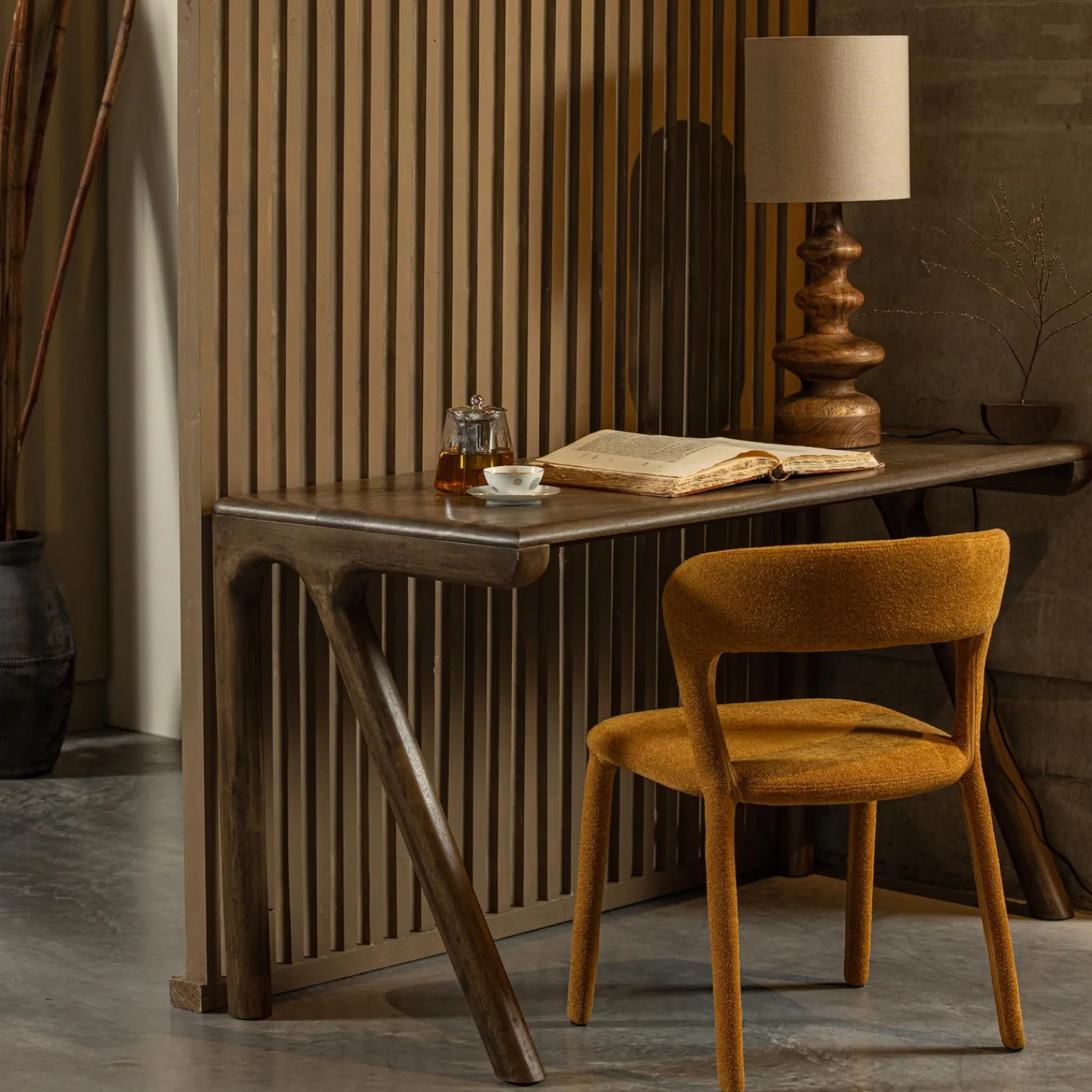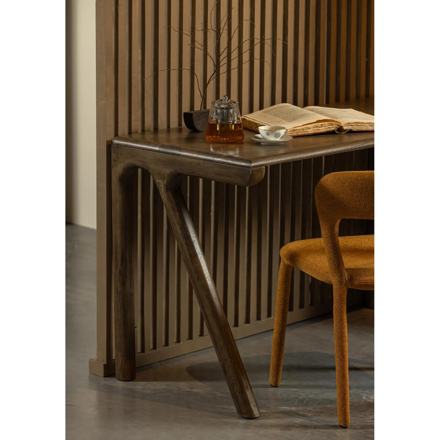 Materiaal en onderhoud: Het bureau is gemaakt van mangohout, bekend om zijn warme, goudbruine kleur en duurzaamheid. Elke plank heeft zijn eigen unieke nerven en kleurnuances, van gele gloed tot donkere lijnen en knoesten. Dit maakt elk Tug bureau uniek. Het onderhouden van mangohout is gemakkelijk. Met een lichtvochtige doek houd je het bureau stof- en vlekvrij. Let op: mangohout is alleen geschikt voor gebruik binnenshuis. Een extra bescherming met transparante coating is mogelijk, maar bij aanschaf eerste jaren niet nodig