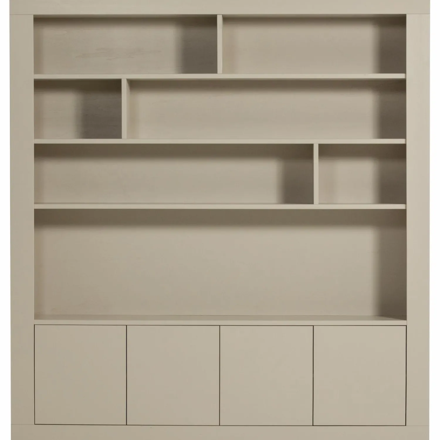 Deze wandkast is jouw persoonlijke gallery wall. Stel je voor: je mooiste boeken, vazen, planten en reissouvenirs krijgen eindelijk de plek die ze verdienen. De open vakken zijn perfect voor styling, terwijl de deurtjes al die minder fotogenieke spullen netjes wegwerken.