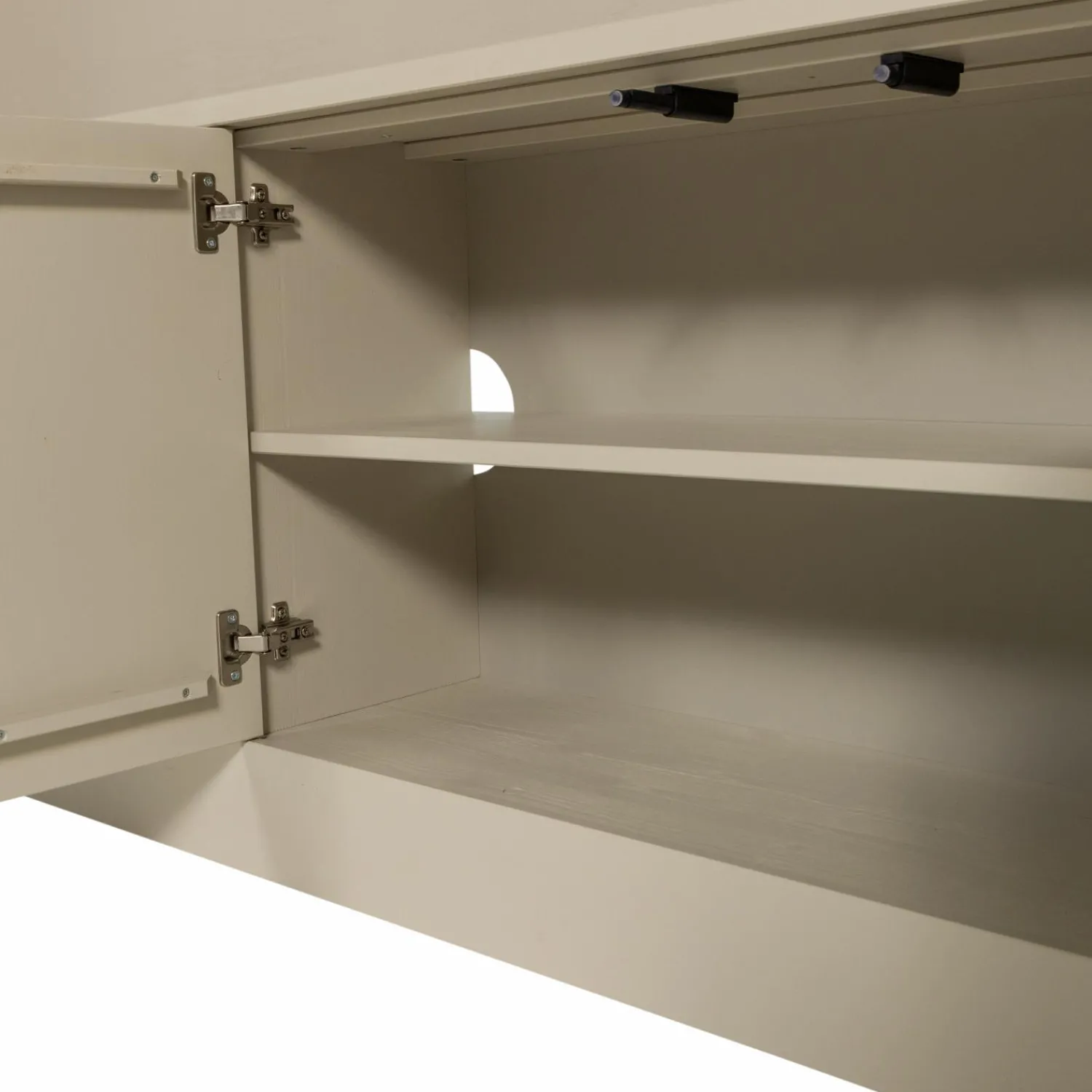 Met 31 cm diepte neemt de kast niet teveel ruimte in beslag, maar biedt wel een zee aan opbergruimte. Perfect voor je woonkamer, studeerkamer of zelfs de slaapkamer. Waar je hem ook plaatst, hij wordt gegarandeerd het middelpunt van de ruimte. Het is ook mogelijk om een televisie in deze wandkast te plaatsen (zie afbeeldingen). Voor een stabiel en veilig gebruik raden we aan om extra aandacht te besteden aan de muurbevestiging.