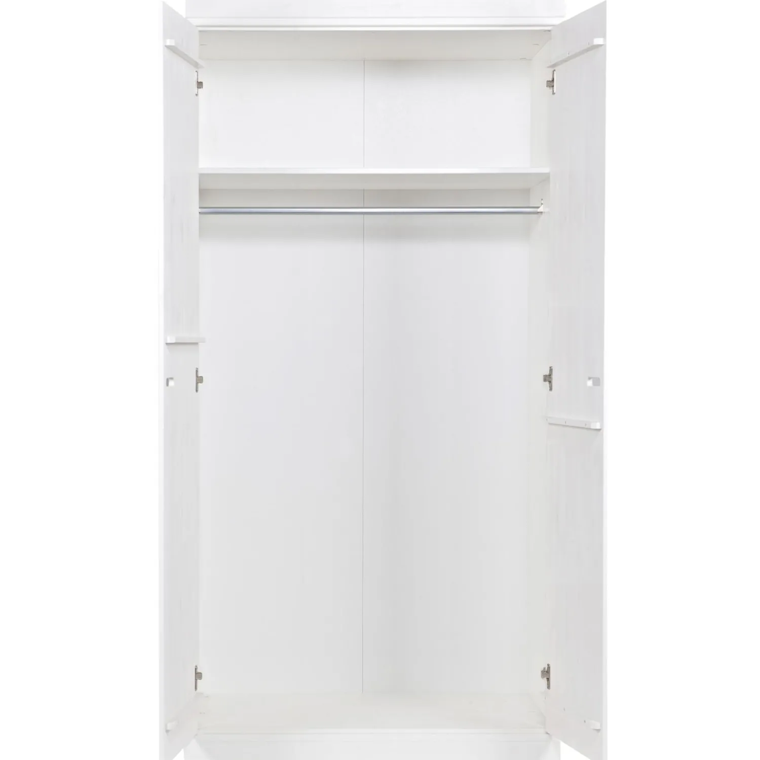 De CONNECT 3-deurs kasten beschikken over een breed hang-/leg interieur (1 roede + 1 legplank) en achter de rechterdeur 3 gedeelde legplanken. Als je meer legplanken wenst dan is er voor deze kast een extra interieurpakket verkrijgbaar. In het hanggedeelte komt dan een extra tussenschot met 2 extra legplanken.