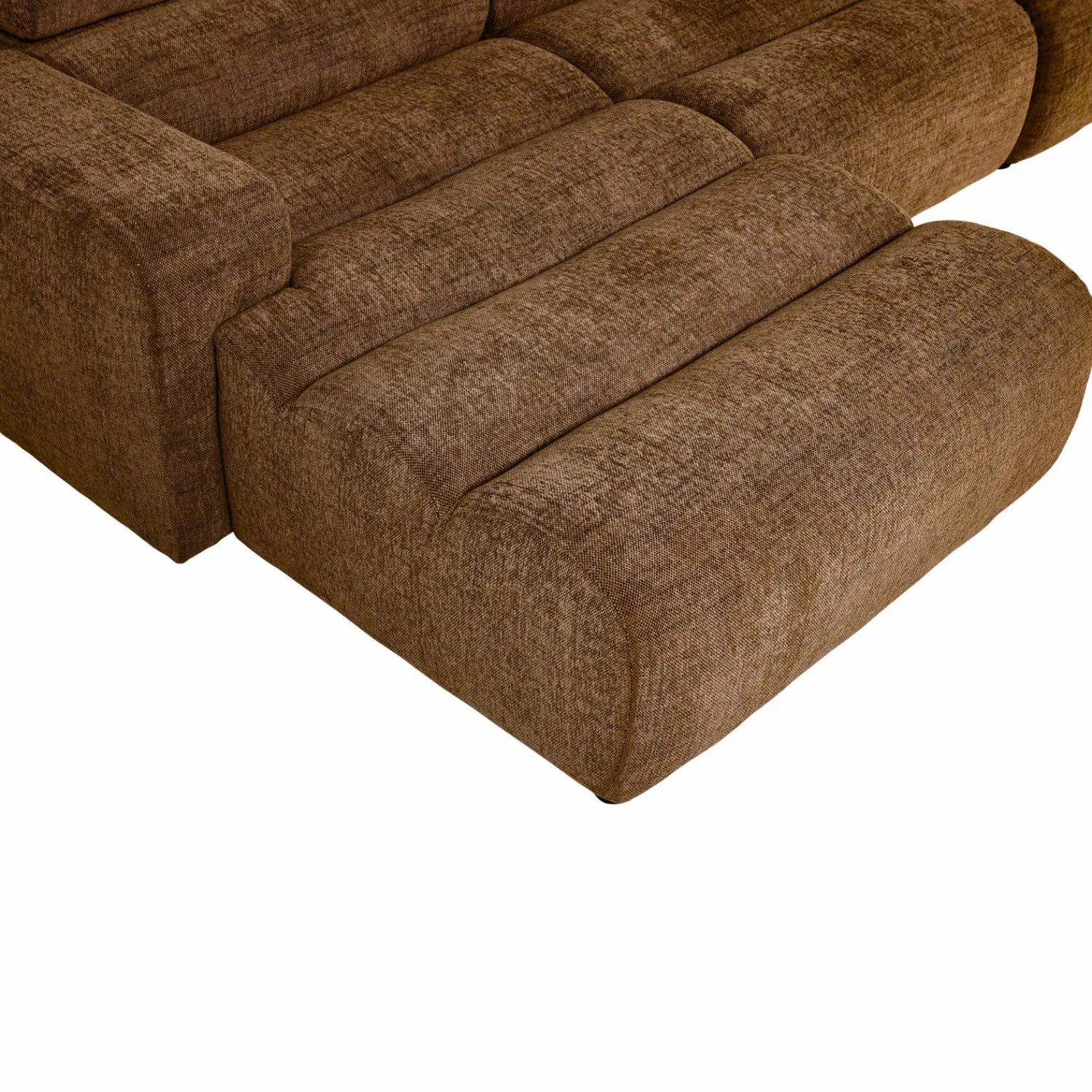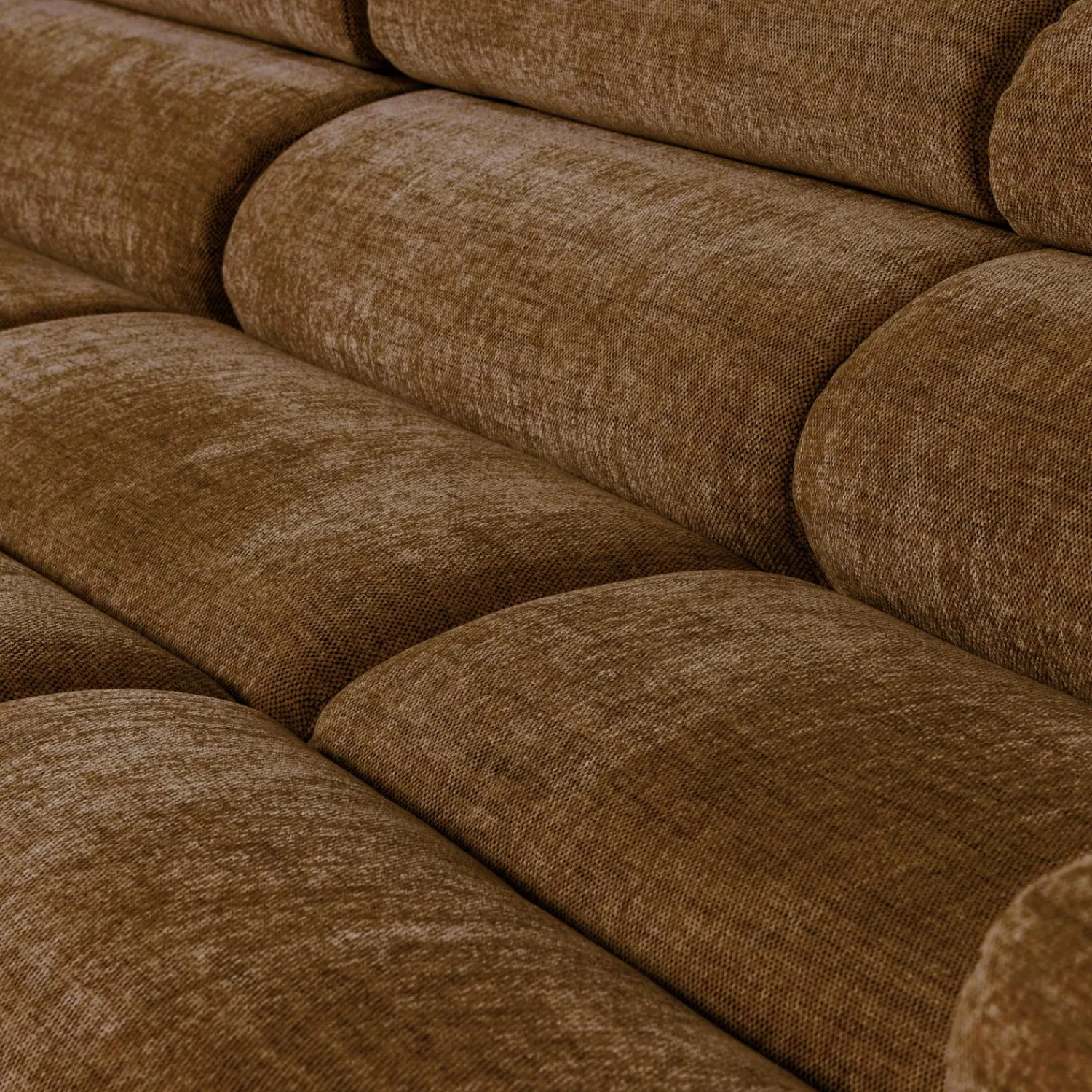 De karamelbruin melange‑stof zorgt voor die extra textuur die je interieur net dat beetje meer karakter geeft. En die vriendelijke, afgeronde vormen? Die maken dat je gasten zich meteen thuis voelen. Het is alsof de bank je uitnodigt om te blijven, te ontspannen, te genieten.