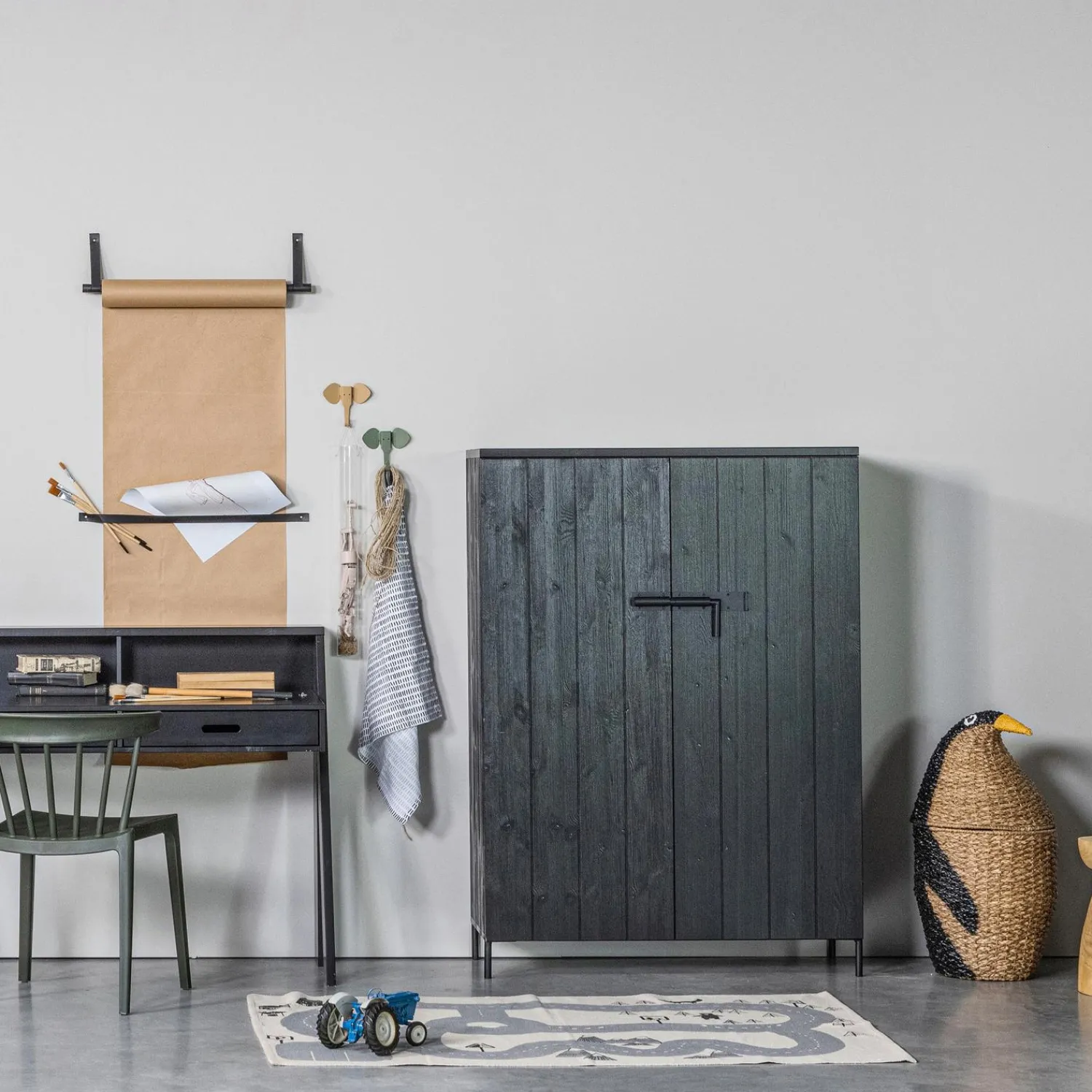 Bruut is een basic kast met leuke details. De kast heeft namelijk een gave sluiting (metalen schuif) op de deuren, staat op metalen pootjes en de kast heeft een stoere geborstelde afwerking.