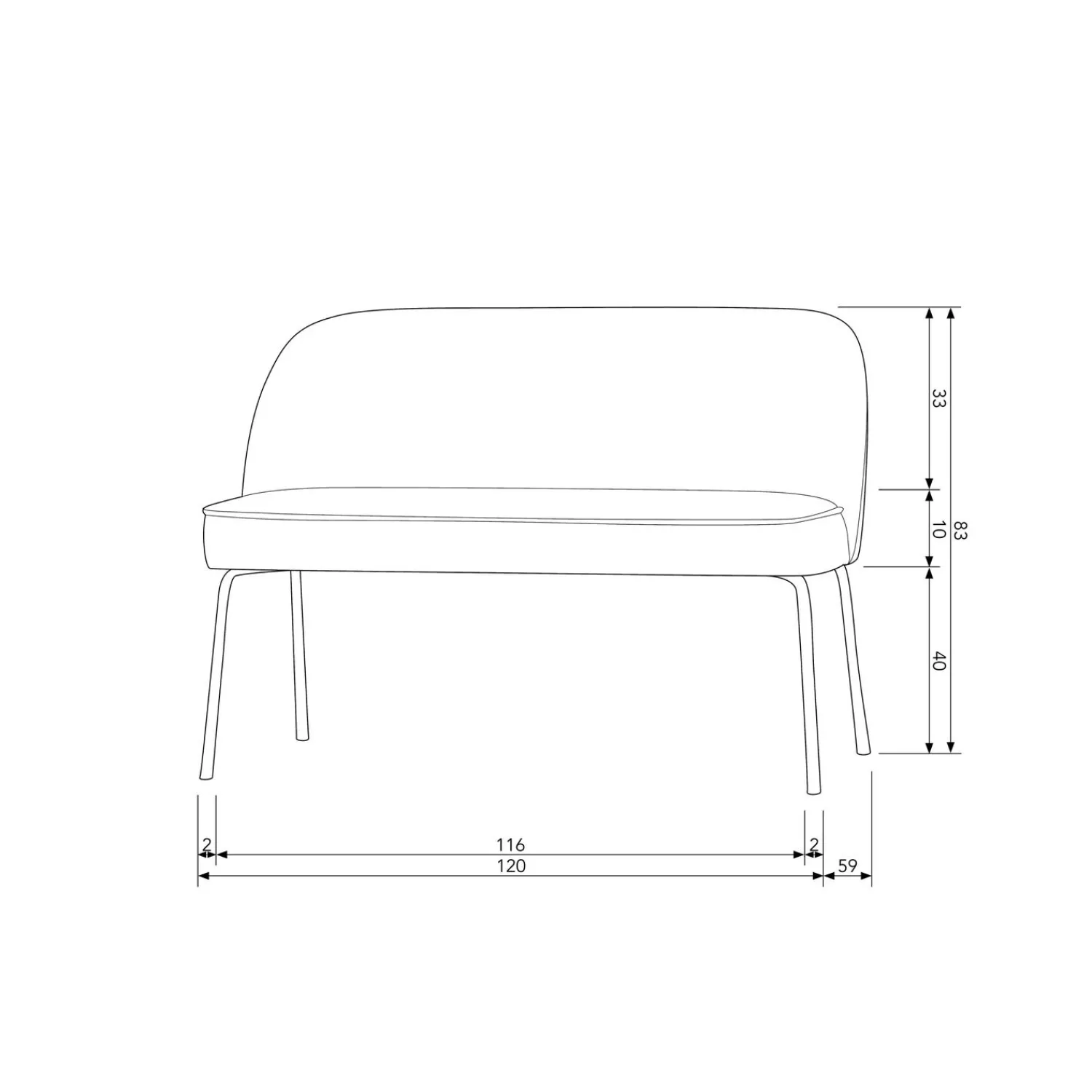 De velvet stof is van 100% polyester, voelt als fluweel aan en is -in tegenstelling tot wat je zal denken- makkelijk in gebruik. De zithoogte van het bankje is 50 cm, de zitdiepte is 45 cm en de zitbreedte is 120 cm.