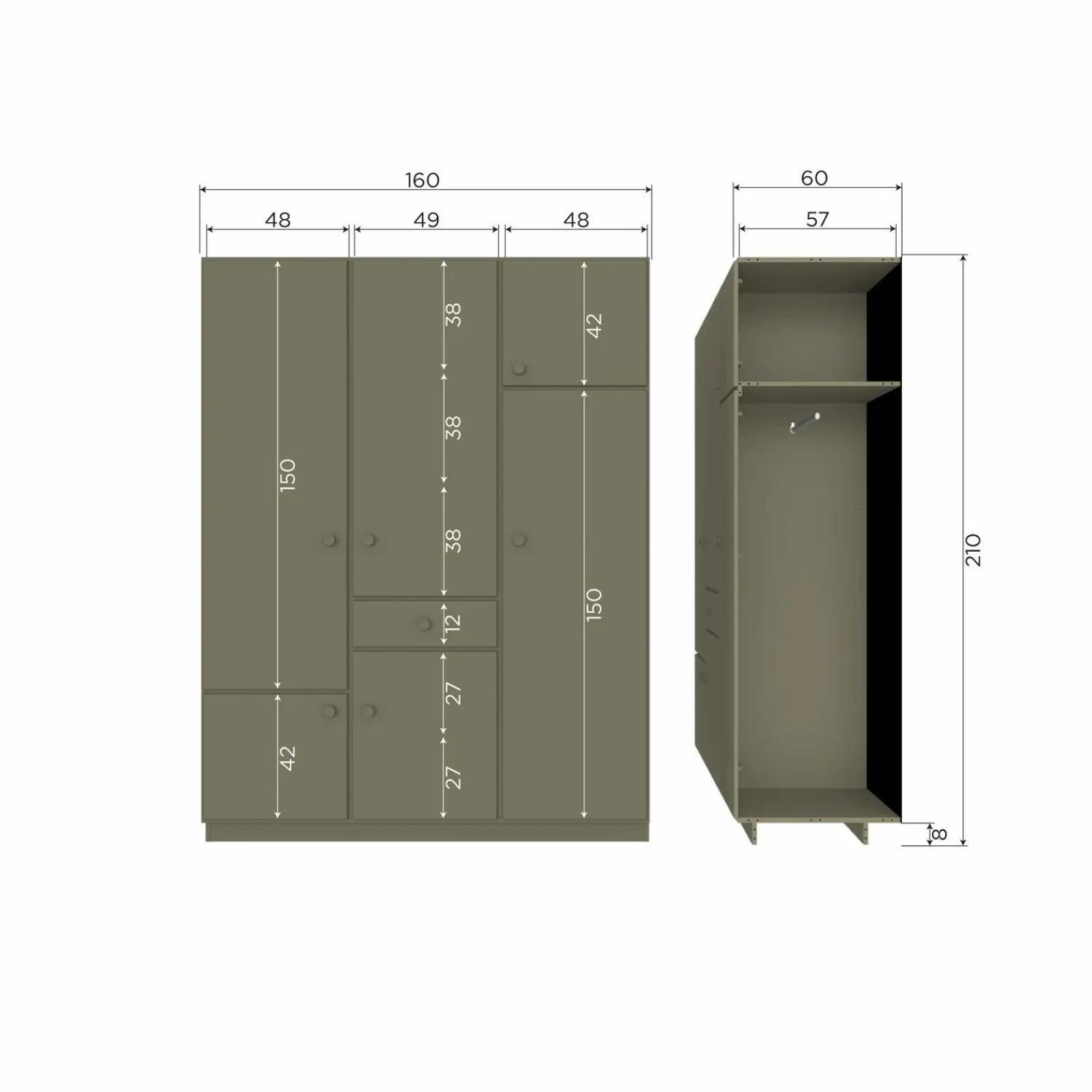 Afmetingen kast breed 160cm: